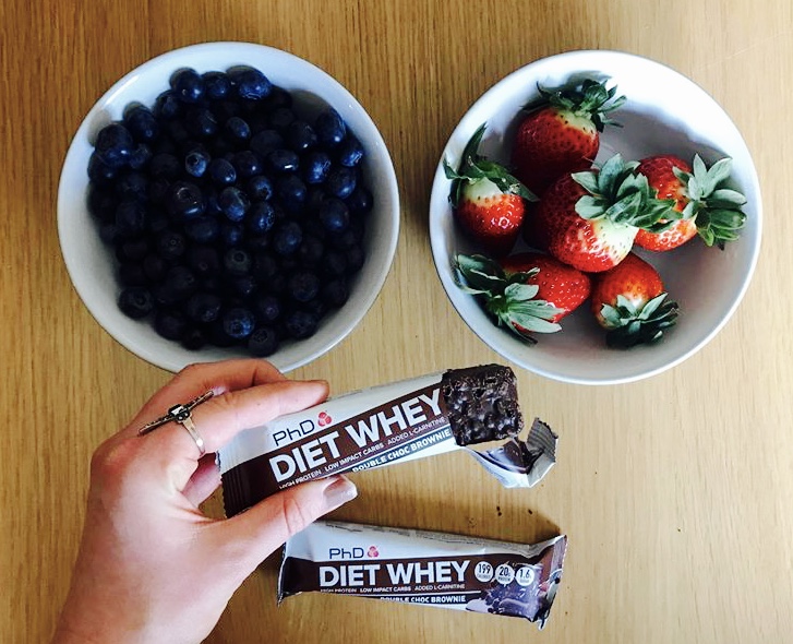 Add the trio into a bowl, grab a fork and dig in. Chopping the bar up is great for portion control – you’ll take longer to chew, so it helps to fight the temptation to eat another bar. I can’t praise DietWhey bars enough – they’re under 200 calories each and really capture the decadent taste of a brownie. Without the sugar rush. The berries meanwhile, are a great source of antioxidants and help to fight inflammation.